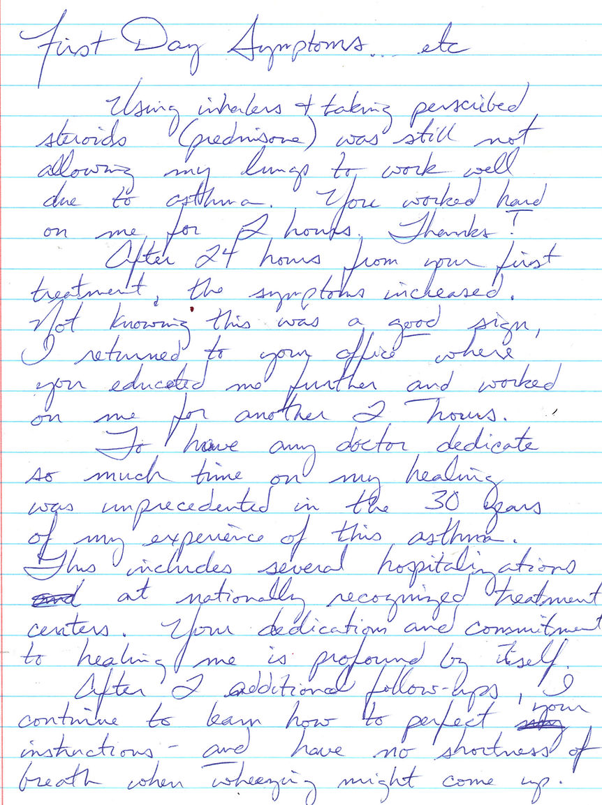 The following are testimonials by Dr. Salar's Asthma patients and their parents describing favorable results, often after only a few visits: